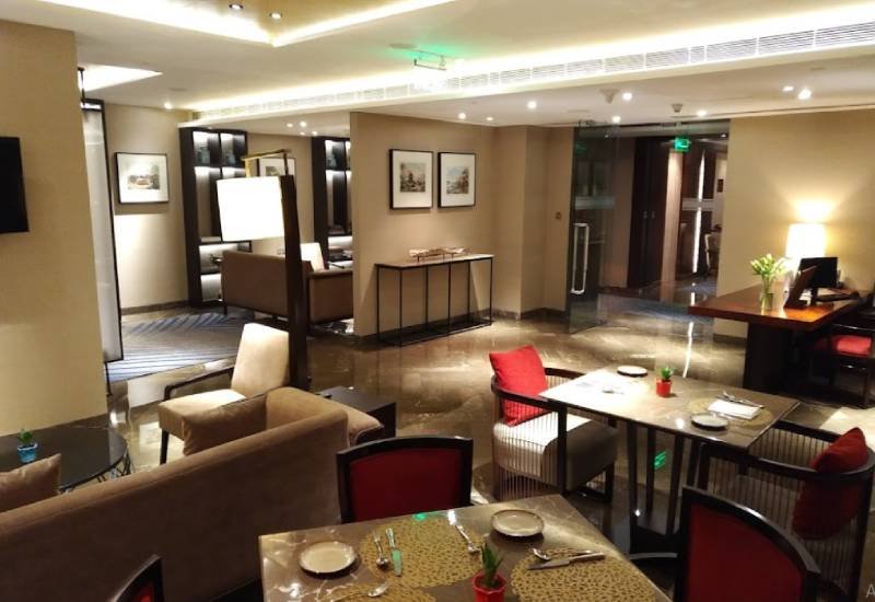 This contemporary hotel is a 6-minute walk from the New Ashok Nagar metro stop, 10 km from Humayun's Tomb, a 16th-century structure in formal gardens, and 12 km from the National Zoological Park Delhi. The chic rooms with dark wood furnishings and floor-to-ceiling windows also feature free Wi-Fi, flat-screen TVs and minibars. All have desks, and tea and coffeemaking facilities. Suites add sitting areas. Club level suites offer access to a lounge serving evening cocktails. A refined restaurant overlooks a patio sitting area. There's also a cosy bar. Other amenities include a spa with a steam room and a sauna, plus an outdoor pool and a gym.